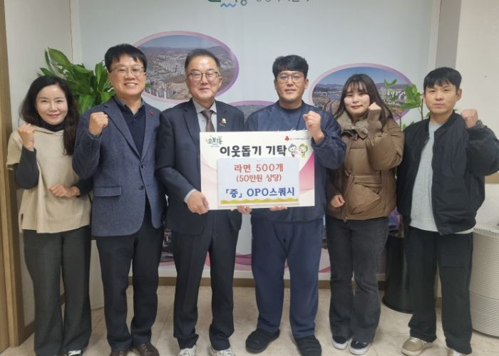 경기호연뉴스 민선기 기자 | OPO스쿼시 강인석 대표는 23일 어려운 이웃에게 전달해 달라며 광주시 오포1동에 라면 500개(50만 원 상당)를 기탁했다.