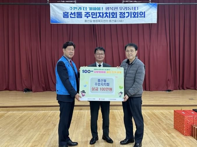 흥선동 주민자치위원회는 주민화합과 공동체 활성화를 위해 다양한 활동을 펼쳐왔으며, 이번에도 100일간 사랑릴레이를 통해 지역사회에 따뜻한 나눔을 실천했다. 기탁된 성금은 관내 취약계층 지원에 사용될 예정이다.
