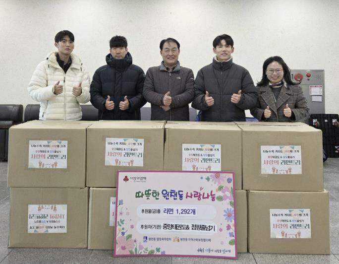 김선혁 동장은 “매년 잊지 않고 따뜻한 나눔을 실천해주시는 중앙태권도&점핑줄넘기에 감사드린다”며 “기부된 라면은 도움이 필요한 가정에 소중히 전달하겠다”고 전했다.