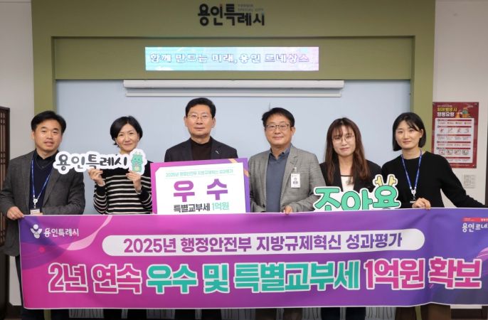 경기호연뉴스 민선기 기자 | 용인특례시는 지난해에 이어 ‘지방규제혁신 성과평가’에서 우수 기관으로 선정돼 특별교부세 1억 원을 확보했다고 16일 밝혔다.