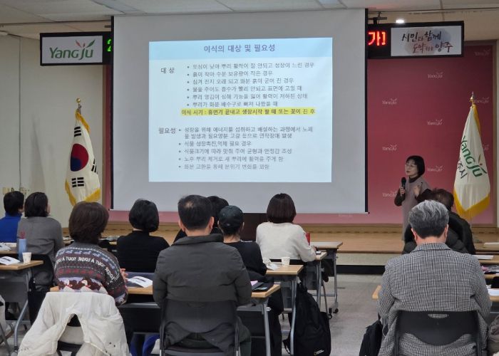 경기호연뉴스 민선기 기자 | 양주시가 지난 16일 농업기술센터 내 교육장에서 도시농업 활성화와 전문 인력 양성을 위한 ‘도시텃밭전문가 교육’을 개최했다.