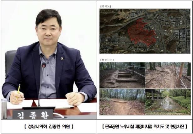 경기호연뉴스 민선기 기자 | 성남시의회 국민의힘 김종환 의원(판교·백현·운중·대장동, 예산결산특별위원장)은 분당구 판교동 판교공원 일원 노후 산책로와 바닥포장 등을 정비하는 재정비공사가 본격 추진됨을 밝혔다.