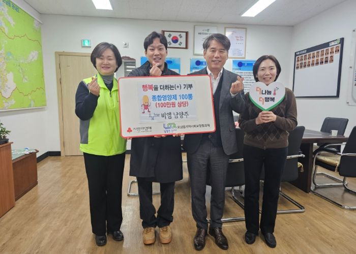 경기호연뉴스 민선기 기자 | 남양주시는 4일 유통 전문회사 비엠 남양주가 지역 내 취약계층을 위해 마련한 종합영양제 100통을 오남읍 지역사회보장협의체에 전달했다고 밝혔다.