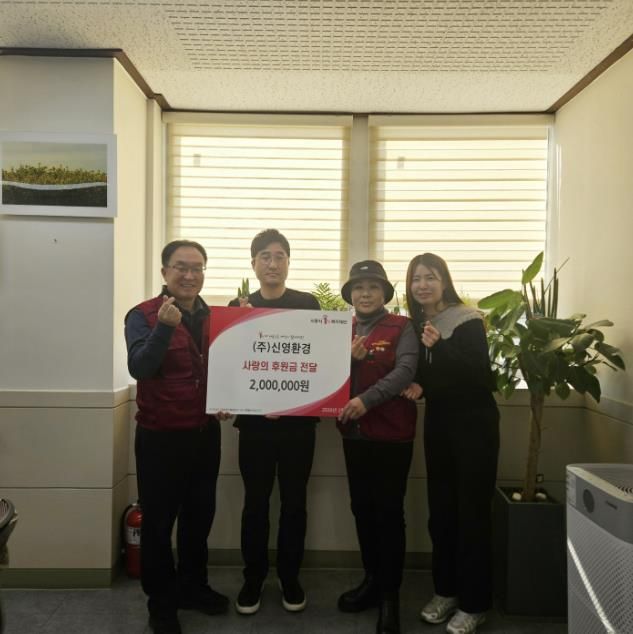 김주배 신현동 지역사회보장협의체 공공위원장은 “㈜신영환경의 따뜻한 나눔 실천에 깊이 감사드린다”라며 “이번 후원이 신현동 주민들에게 큰 힘이 될 것으로 기대하며, 소중한 뜻이 잘 전달될 수 있도록 최선을 다하겠다”라고 말했다.