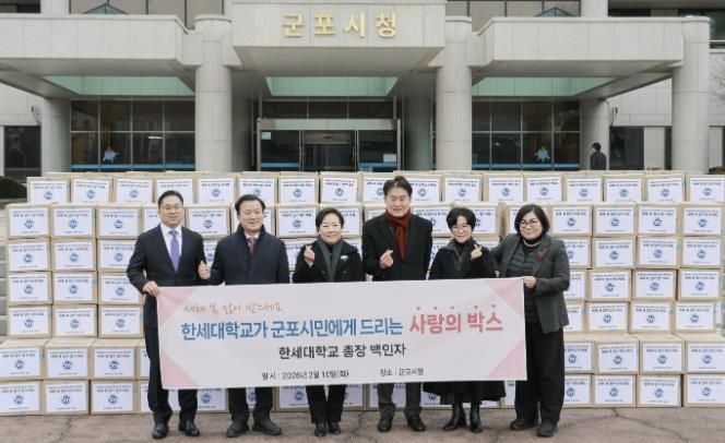 경기호연뉴스 민선기 기자 | 유난히 추운 겨울이지만, 군포시에는 이웃을 향한 정성이 모여 훈훈한 설 명절 분위기가 피어나고 있다. 한세대학교는 10일, 지역 내 취약계층의 넉넉한 명절을 위해 ‘사랑의 희망박스’ 350세트를 군포시에 전달하며 상생의 가치를 실천했다.