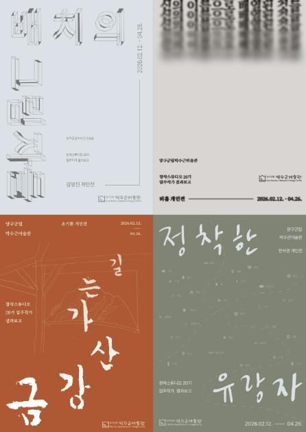 이번 전시는 2025년 박수근미술관 창작스튜디오 20기에 입주한 김영진, 비홉, 손기환, 한석경 4인의 작업을 소개하는 자리로, 작가들이 양구에 머무르며 1년간 이어온 각자의 질문과 실천을 개인전 형식으로 선보인다.