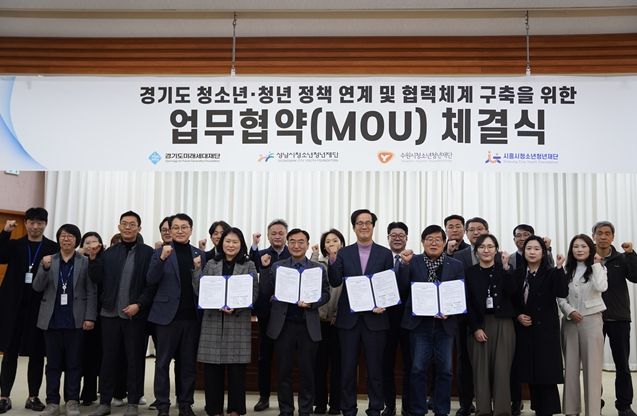 경기호연뉴스 민선기 기자 | 수원시청소년청년재단은 2월 12일, 경기도미래세대재단, 성남시청소년청년재단, 시흥시청소년청년재단과 함께 ‘경기도 청년 정책 연계 및 협력체계 구축을 위한 업무협약’을 체결했다.