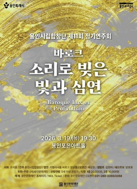 경기호연뉴스 민선기 기자 | 용인문화재단은 오는 3월 19일 오후 7시 30분, 포은아트홀에서 용인시립합창단 제11회 정기연주회 '바로크 – 소리로 빚은 빛과 심연'을 개최한다.