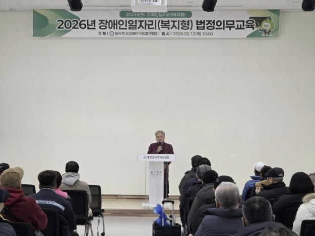 경기호연뉴스 민선기 기자 | 동두천시장애인단체총연합회는 장애인일자리(복지일자리) 참여자의 근로 권익 보호와 안전한 근무환경 조성을 위해 2026년 법정 의무교육을 실시했다. 이번 교육에는 참여자 103명이 참석했다.