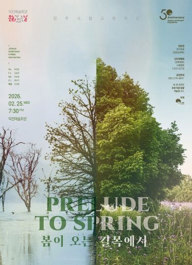 경기호연뉴스 민선기 기자 | 전주시립교향악단은 오는 25일 덕진예술회관에서 2월 ‘문화가 있는 날’을 맞아 ‘봄이 오는 길목에서’ 공연을 선보일 예정이라고 20일 밝혔다.