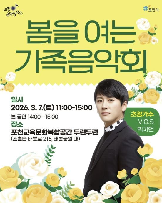 경기호연뉴스 민선기 기자 | 포천시는 오는 3월 7일 포천시 교육문화복합공간 두런두런에서 ‘포천음악창작소, 봄을 여는 가족음악회’를 개최한다.