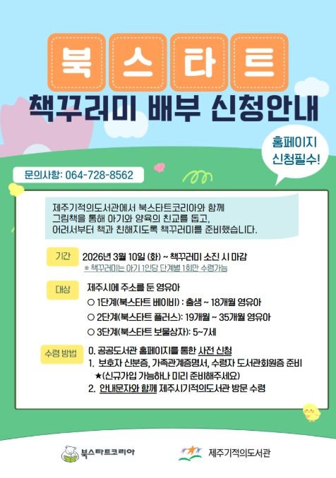 경기호연뉴스 민선기 기자 | 제주기적의도서관은 영유아의 평생 독서 습관 형성을 위해 북스타트 사업 ‘내 생애 첫 선물, 책꾸러미’ 배부 대상을 확대한다.