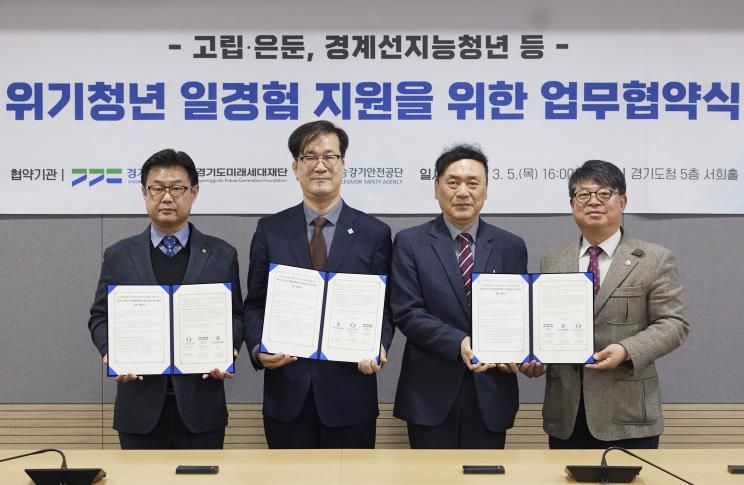 경기호연뉴스 민선기 기자 | 경기도와 경기도미래세대재단, 한국승강기안전공단 경인지역본부는 5일 경기도청 서희홀에서 ‘위기청년 일경험 지원을 위한 업무협약’을 체결했다.