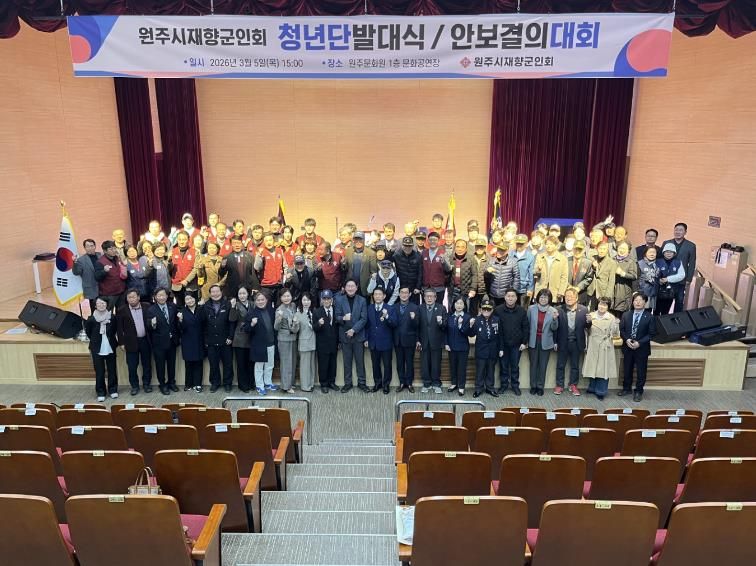 원강수 원주시장은 “원주시 재향군인회는 자유대한민국을 지켜낸 헌신과 희생의 상징으로, 지역사회에서 안보의식 확산과 봉사활동을 통해 중요한 역할을 해왔다”라며, “새롭게 출범한 청년단이 이러한 전통을 이어받아 지역사회 발전을 이끄는 중심 역할을 해주길 기대한다”라고 말했다.