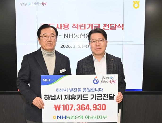 경기호연뉴스 민선기 기자 | NH농협은행 하남시지부가 5일 제휴카드 사용 적립기금 107,364,930원 하남시에 전달했다고 밝혔다.
