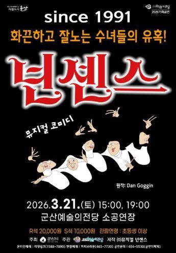 군산예술의전당 관계자는 “모든 것이 새롭게 시작되는 3월의 싱그러운 봄날, 유쾌하게 웃을 수 있는 뮤지컬 코미디 '넌센스' 관람을 통해 시민들이 활기찬 일상을 보내시길 바란다”고 전했다.