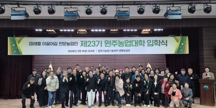 경기호연뉴스 민선기 기자 | 원주시농업기술센터는 지난 18일 센터 생명농업관에서 ‘제23기 원주농업대학 입학식’을 개최하고, 지역 농업의 미래를 이끌 전문농업경영인 양성을 위한 교육과정을 시작했다.