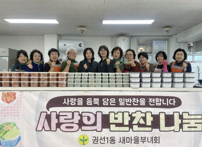 오수옥 권선1동 새마을부녀회장은 “따뜻한 봄을 맞아 홀로 계신 어르신들께 조금이나마 따뜻한 정을 전하고자 반찬을 준비했다”며 “앞으로도 권선1동 내 어려운 이웃들을 위한 반찬 나눔 활동을 지속적으로 이어가겠다”라고 말했다.