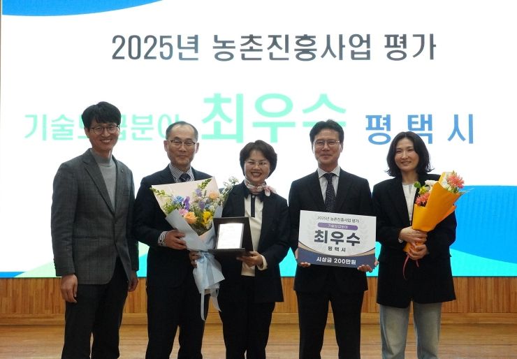경기호연뉴스 민선기 기자 | 평택시농업기술센터는 경기도농업기술원이 주관한 '2025년 농촌진흥사업 평가’기술보급 분야에서 최우수 기관으로 선정되어, 지난 26일 경기도농업기술원에서 최우수상을 받았다고 밝혔다.