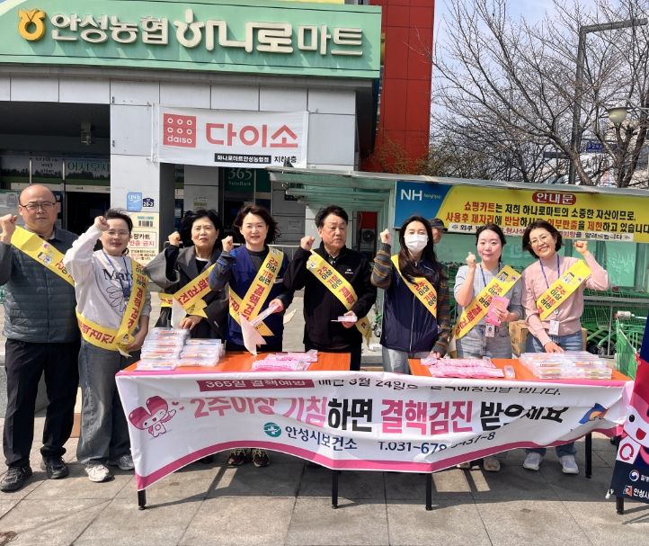 안성시보건소 관계자는 “이번 캠페인을 통해 결핵에 대한 시민들의 막연한 불안감을 해소하고 올바른 건강 지식을 전달하는 계기가 되길 바라며, 앞으로도 빈틈없는 검진 체계를 통해 결핵으로부터 안전한 지역사회를 만드는 데 최선을 다하겠다”고 밝혔다.