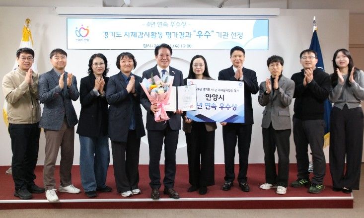 경기호연뉴스 민선기 기자 | 안양시가 ‘2026년 경기도 자체감사활동 평가’에서 4년 연속 우수상을 받았다고 밝혔다.