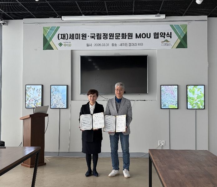 경기호연뉴스 민선기 기자 | 재단법인 세미원과 국립정원문화원은 지난 3월 31일 세미원에서 상호 협력을 위한 업무협약(MOU)을 체결했다.
