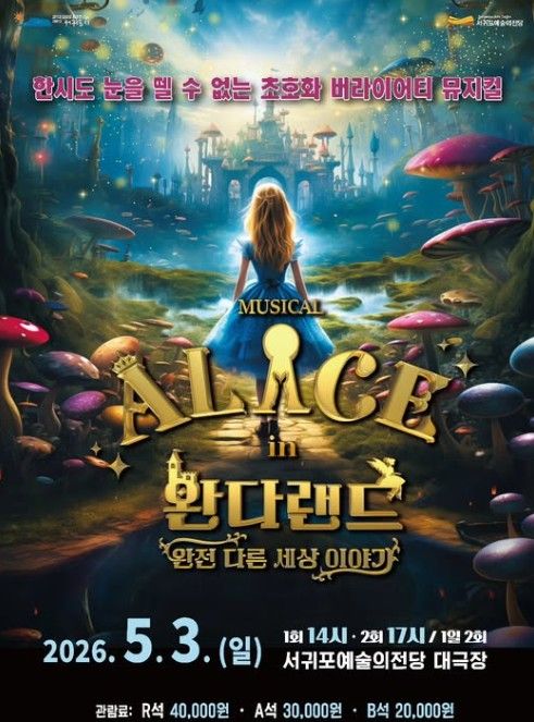 경기호연뉴스 민선기 기자 | 서귀포예술의전당은 5월 가정의 달을 맞아 뮤지컬 '이상한 나라의 앨리스: 완다랜드'를 5월 3일 오후 2시와 5시, 총 2회에 걸쳐 서귀포예술의전당 대극장에서 선보인다.