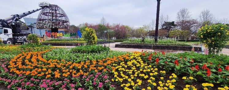 경기호연뉴스 민선기 기자 | 전남 함평군이 대한민국 대표 봄 축제인 나비대축제 개막을 앞두고 함평엑스포공원에 대형 꽃탑을 설치해 이목을 끈다.