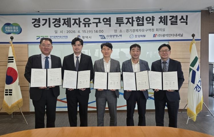 경기호연뉴스 민선기 기자 | 경기경제자유구역청은 15일 경기경제청 8층 회의실에서 평택시 및 자동차부품, 반도체, 화학 제조기업 5개사(㈜왕성이노텍, 조양메탈㈜, ㈜광석인터내셔날/그 외 2개 기업 서면 협약)와 평택 포승(BIX)지구 산업시설용지 투자협약을 체결했다.