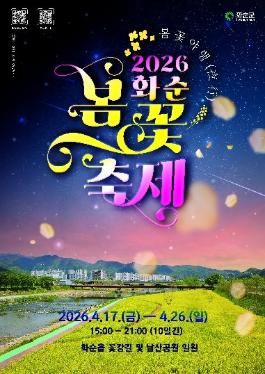 경기호연뉴스 민선기 기자 | 전라남도 화순군은 봄을 맞아 지역 대표 축제인 ‘2026 화순 봄꽃 축제’를 오는 4월 17일부터 26일까지 10일간 화순 꽃강길과 남산공원 일원에서 개최한다고 밝혔다.