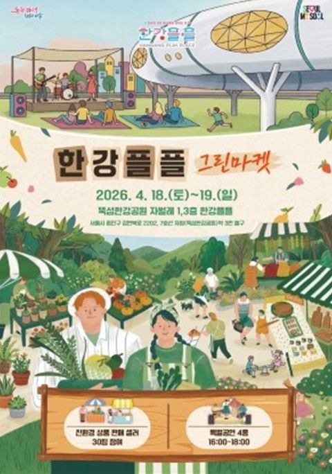 서울시 미래한강본부는 뚝섬한강공원 자벌레에 조성된 체험형 복합문화공간 ‘한강플플(Play Place)’에서 4월 18일~4월 19일 이틀간 오후 12시~오후 8시 '한강플플 그린마켓'을 개최한다고 밝혔다. 이번 그린마켓을 시작으로 5월 5일 어린이날 ‘한강플플 어드벤처’ 등 계절별 다양한 프로그램을 이어갈 예정이다.