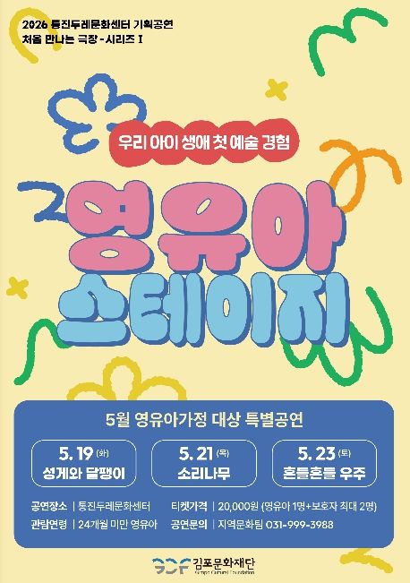 김포문화재단 관계자는“영유아와 보호자가 함께하는 첫 공연 경험이 즐겁고 의미 있는 시간이 될 수 있도록 지속적으로 노력하겠다”고 밝혔다.