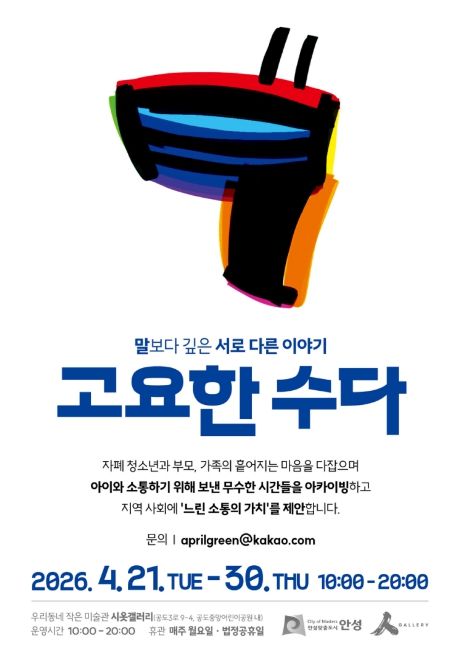 경기호연뉴스 민선기 기자 | 안성시 시옷갤러리는 오는 4월 21일부터 4월 30일까지 자폐 청소년과 그 가족이 함께 참여하는 전시 《고요한 수다》를 개최한다고 밝혔다.