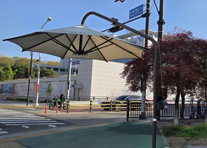 일산동구는 교통섬과 신호등 앞 등 그늘이 없는 지역에 3~5m 규모의 그늘막을 설치해 강한 햇빛으로 인한 보행자 불편을 해소하고 있다.
