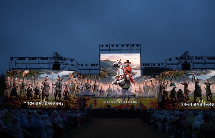 영상에서는 곽재우 장군을 비롯한 17장령 전원이 대형 스크린에 구현됐으며, 강가를 배경으로 한 전투 장면이 펼쳐지며 마치 전장 한가운데에 들어온 듯한 몰입감을 선사했다. 불길과 연기가 피어오르는 가운데 의병장들이 결연한 표정으로 전장을 바라보는 모습은 긴박한 상황을 생생하게 전달했다.