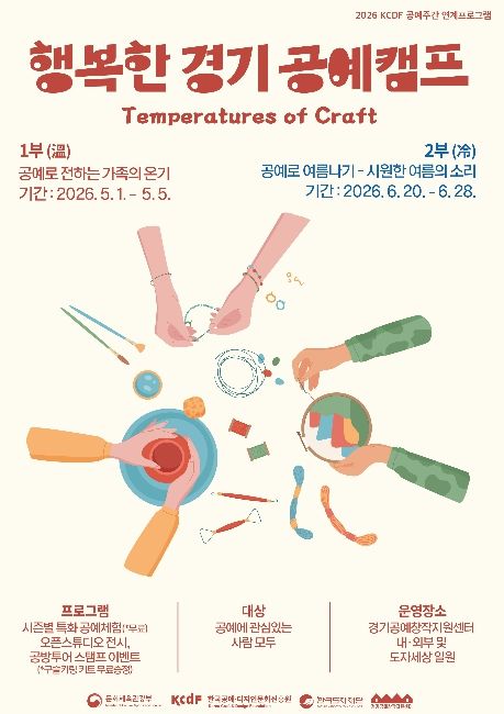 경기호연뉴스 민선기 기자 | 한국도자재단이 오는 5월 1일부터 경기공예창작지원센터(여주) 일원에서 체험·전시·이벤트를 결합한 참여형 프로그램 ‘2026 행복한 경기 공예 캠프’를 개최한다.