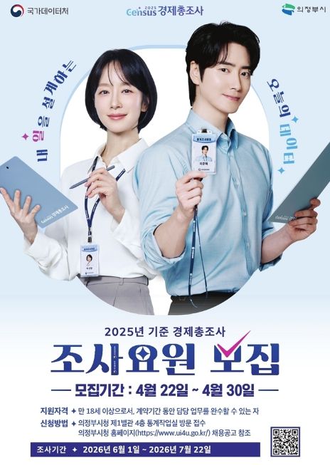 경기호연뉴스 민선기 기자 | 의정부시는 6월 1일부터 실시되는 ‘2025년 기준 경제총조사’의 원활한 추진을 위해 조사요원 77명을 모집한다.
