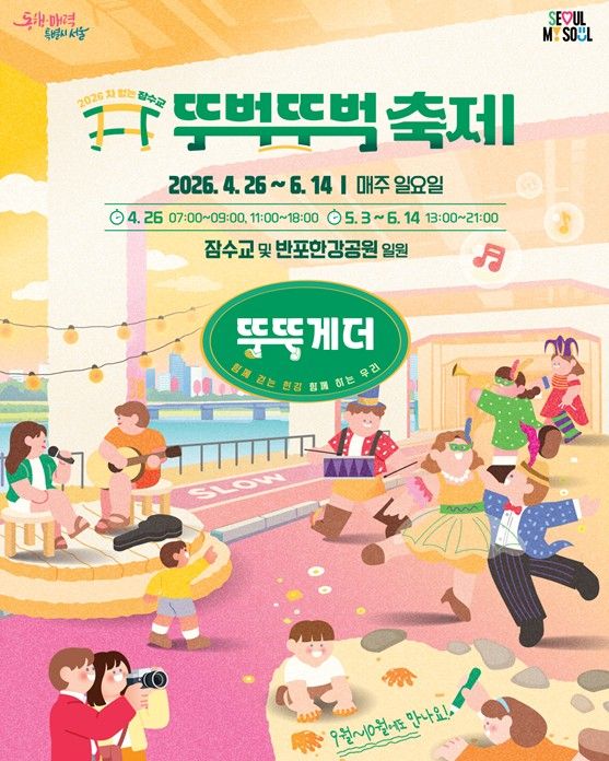 서울시는 4월 26일부터 6월 14일까지 8주간 매주 일요일 잠수교와 반포한강공원 일원에서 “함께 걷는 한강, 함께 하는 우리”라는 콘셉트로 '2026 차 없는 잠수교 뚜벅뚜벅 축제'를 개최한다.