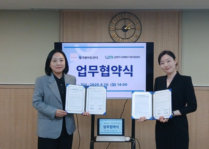 협약식에는 배애련 남양주시장애인가족지원센터장과 오윤서 별가람아트센터장 등이 참석했다. 양 기관은 오는 5월부터 △장애인 가족 맞춤형 미술프로그램 운영 △위기가정 발굴 및 지원 △사회공헌 및 홍보 등에 상호 협력하기로 했다.