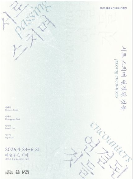 경기호연뉴스 민선기 기자 | 제주문화예술재단은 창립 25주년을 맞아 오는 24일부터 6월 21일까지 예술공간 이아 B1 전시실에서 기획전 《서로 스치며 연결된 것들 : Passing Encounters》를 개최한다.