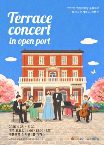 경기호연뉴스 민선기 기자 | (재)인천중구문화재단은 오는 4월 25일부터 5월 30일까지 매주 토요일마다 인천 개항장 문화지구 내 대불호텔 전시관 테라스에서 '테라스 콘서트 in 개항장'’을 운영한다고 밝혔다.