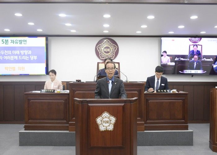 경기호연뉴스 민선기 기자 | 동두천시의회 박인범 의원(더불어민주당, 나선거구)이 제345회 임시회 폐회식에서 시의원으로서의 마지막 5분 자유발언에 나섰다. 제1대, 제8대, 제9대 동두천시의원과 제8대 경기도의회 의원을 거친 박 의원은 이번 임기를 끝으로 의정활동을 마무리하며, 공직자들에게 '시민이 찾아오는 동두천'을 향한 당부의 메시지를 전했다.