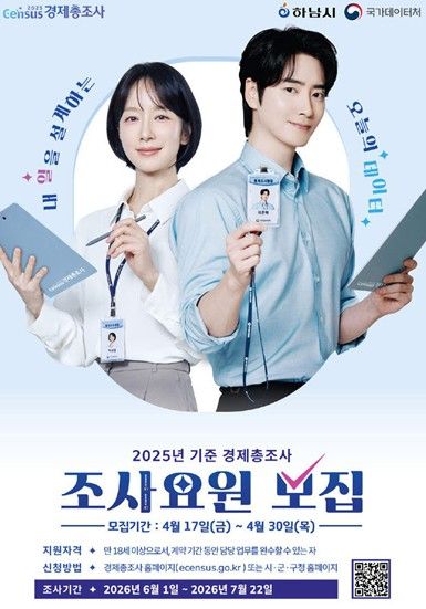 경기호연뉴스 민선기 기자 | 하남시는 4월 17일부터 30일까지 ‘2025년 기준 하남시 경제총조사’ 수행을 위한 조사요원을 모집한다고 밝혔다.