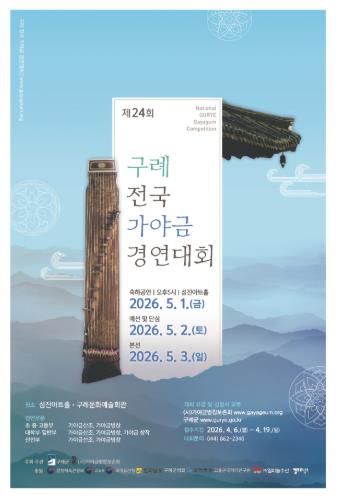 경기호연뉴스 민선기 기자 | 전남 구례군이 주최하고 (사)가야금병창보존회가 주관하는 ‘제24회 구례 전국 가야금 경연대회’가 오는 5월 2일부터 3일까지 이틀간 열린다.