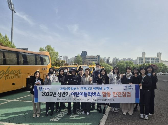 경기호연뉴스 민선기 기자 | 수원특례시는 21일 수원종합운동장 주차구역에서 수원 장안·권선·팔달·영통경찰서, 한국교통안전공단과 함께 ‘2026년 상반기 어린이통학버스 합동 안전점검’을 했다.