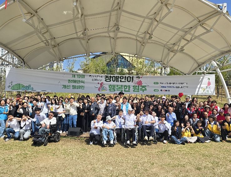 경기호연뉴스 민선기 기자 | 원주시지역사회보장협의체 장애인분과는 장애인의 날을 기념해 지난 18일 기업도시 샘마루공원에서 개최한 장애인식 개선 캠페인 ‘장애인이 행복한 원주’를 성황리에 마쳤다.