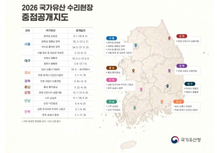 경기호연뉴스 민선기 기자 | 국가유산청은 국가유산 수리과정에 대한 국민의 이해를 높이고, 현장 체험 기회를 확대하기 위해 2026년 전국 주요 국가유산 수리현장 15개소를 선정하여 올해 12월까지 일반에 공개한다.