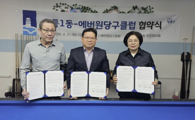 경기호연뉴스 민선기 기자 | 수원시 영통구 영통1동 행정복지센터와 영통1동 주민자치회는 지난 21일, 주민자치센터 프로그램의 다양성과 전문성을 강화하기 위해 관내 민간체육시설인 에버원당구클럽과 업무협약을 체결했다.