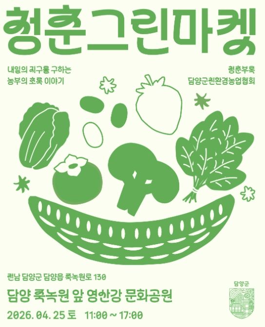 경기호연뉴스 민선기 기자 | 담양군친환경농업협회가 오는 25일 오전 11시부터 오후 5시까지 죽녹원 앞 영산강 문화공원에서 ‘제2회 청춘그린마켓’을 연다.