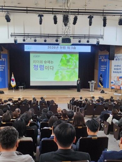 경기호연뉴스 민선기 기자 | 화성특례시는 22일 시청 대강당에서 고위공직자를 대상으로 ‘2026년 청렴 워크숍’을 개최했다. 이번 워크숍은 조직을 이끄는 고위공직자의 청렴 리더십을 강화하고, 반부패 관련 법령에 대한 이해를 높여 공정하고 투명한 공직문화를 정착시키기 위해 마련됐다.